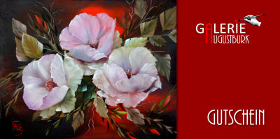Ein Gutschein der Galerie Augustburk ist das ideale Geschenk zu jedem Festtag als kleines Dankeschön oder gerade jetzt als festliche Überraschung unter dem Weihnachtsbaum. Statt vergänglicher Blumen oder flüchtiger Präsente schenken Sie mit einem Malkurs-Erlebnis oder einem fertigen Ölgemälde etwas, das lange Freude bereitet.