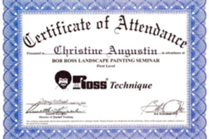 Übergabe des Bob Ross Zertifikates CRI® von Bob Ross Teachertrainerin Mrs. Mary McClead