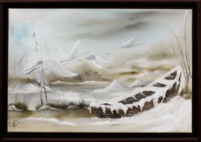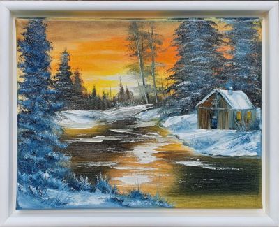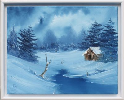Die Kursteilnehmenden lernen in diesem Malkurs die sog. Nass-in-Nass-Ölmaltechnik kennen. Diese Technik wurde gegen Ende des 19. und Anfang des 20. Jahrhunderts erstmalig geschichtlich dokumentiert. Der US-Amerikanische TV-Maler Robert Norman "Bob- Ross®" verfeinerte diese Wet-on-Wet Technique® mit speziell entwickelten Grundierungen, Farben und Pinseln, machte die Ölmalerei so hobbytauglich und schuf wundervolle Landschafts- und Blumenbilder an nur einen Tag. Ebenso wie in seinen Fernsehsendungen "The Joy of Painting®" gestalten Sie in diesem Kurs unter genauer „Schritt für Schritt“-Anleitung der Bob Ross® - Mallehrerin, Christine Burkowski, ein Landschafts-Ölgemälde, Motiv: "Winterhütte" im Format: 40 x 50 cm.