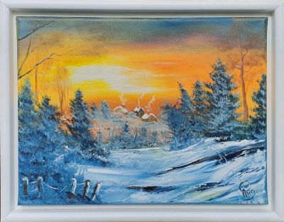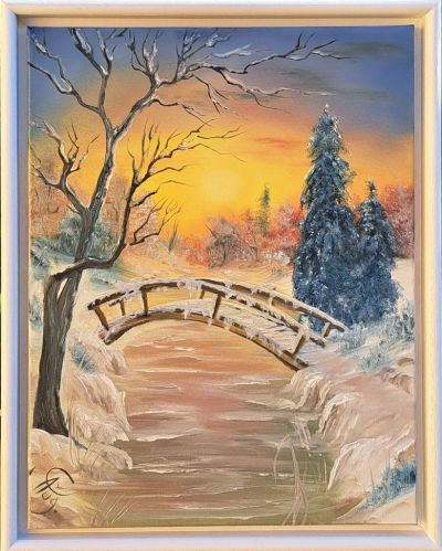 Die Kursteilnehmenden lernen in diesem Malkurs die sog. Nass-in-Nass-Ölmaltechnik kennen. Diese Technik wurde gegen Ende des 19. und Anfang des 20. Jahrhunderts erstmalig geschichtlich dokumentiert. Der US-Amerikanische TV-Maler Robert Norman "Bob- Ross®" verfeinerte diese Wet-on-Wet Technique® mit speziell entwickelten Grundierungen, Farben und Pinseln, machte die Ölmalerei so hobbytauglich und schuf wundervolle Landschafts- und Blumenbilder an nur einen Tag. Ebenso wie in seinen Fernsehsendungen "The Joy of Painting®" gestalten Sie in diesem Kurs unter genauer „Schritt für Schritt“-Anleitung der Bob Ross® - Mallehrerin, Christine Burkowski, ein Landschafts-Ölgemälde, Motiv: "Winterdorf" im Format: 40 x 50 cm.